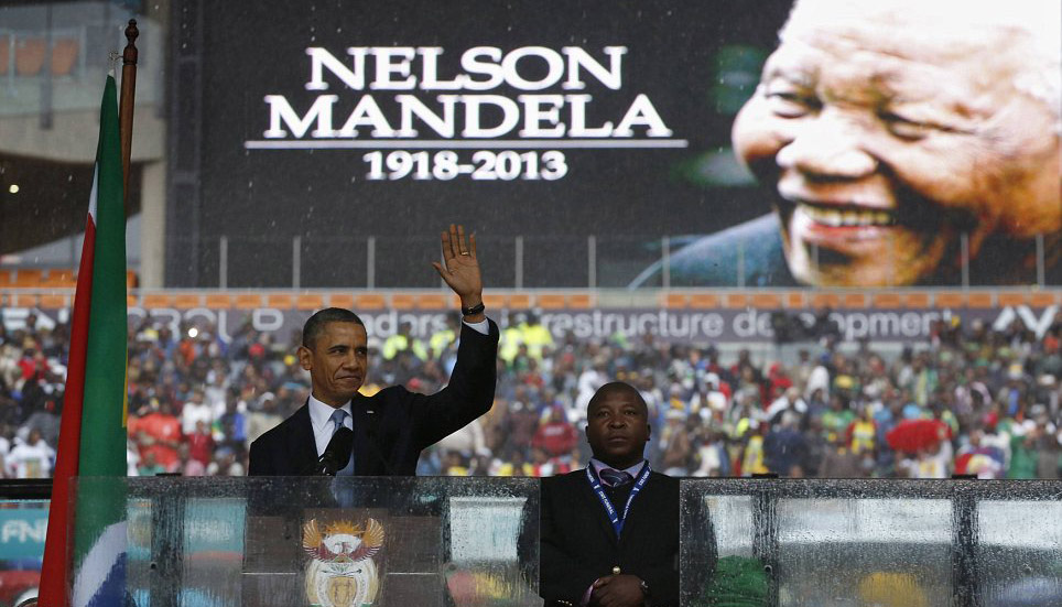 Thông dịch viên đứng cạnh Tổng thống Mỹ Barrack Obama Trước hàng chục ngàn người có mặt tại sân vận động FNB ở Johannesburg. Người đàn ông danh tính không được xác định đứng bên cạnh các nhà lãnh đạo trên thế giới trong đó có Tổng thống Mỹ Barrack Obama đã sử dụng những ngôn ngữ ký hiệu giả